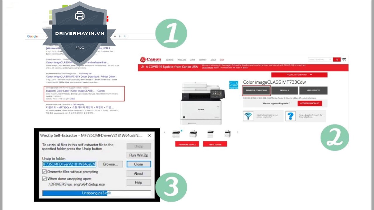 Để máy in Canon imageCLASS MF643Cdw hoạt động ổn định và phát huy đầy đủ các chức năng in – scan – fax, bạn cần tải và cài đặt đúng driver từ trang chính thức của Canon. Hãy thực hiện theo các bước chi tiết dưới đây: