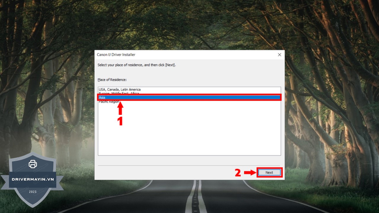 Bước 3: Tại phần lựa chọn khu vực, bạn chọn Asia, sau đó nhấn Next để chuyển sang bước tiếp theo.