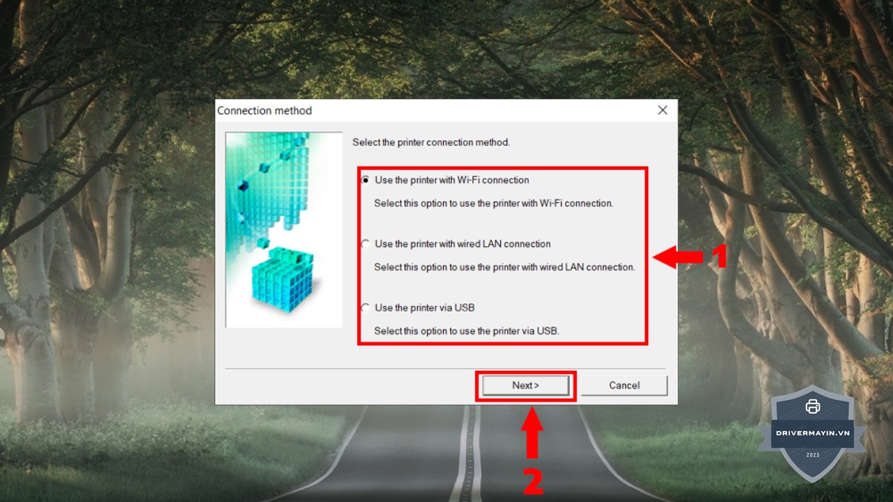 Bước 5: Danh sách các thiết bị máy in sẽ xuất hiện, bạn hãy chọn đúng máy in Canon PIXMA G6070 cần cài đặt driver, sau đó nhấn Next để tiếp tục.