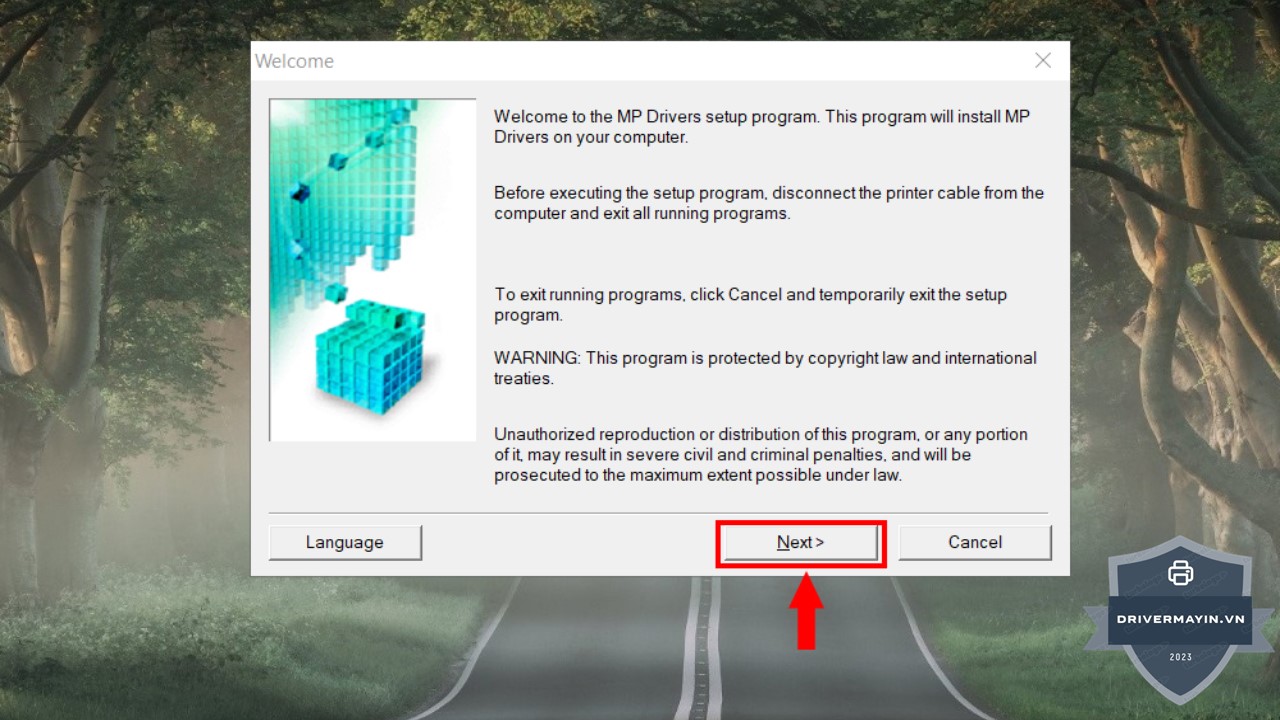 - Khi giao diện cài đặt driver xuất hiện, nhấn Next để bắt đầu quá trình cài đặt.