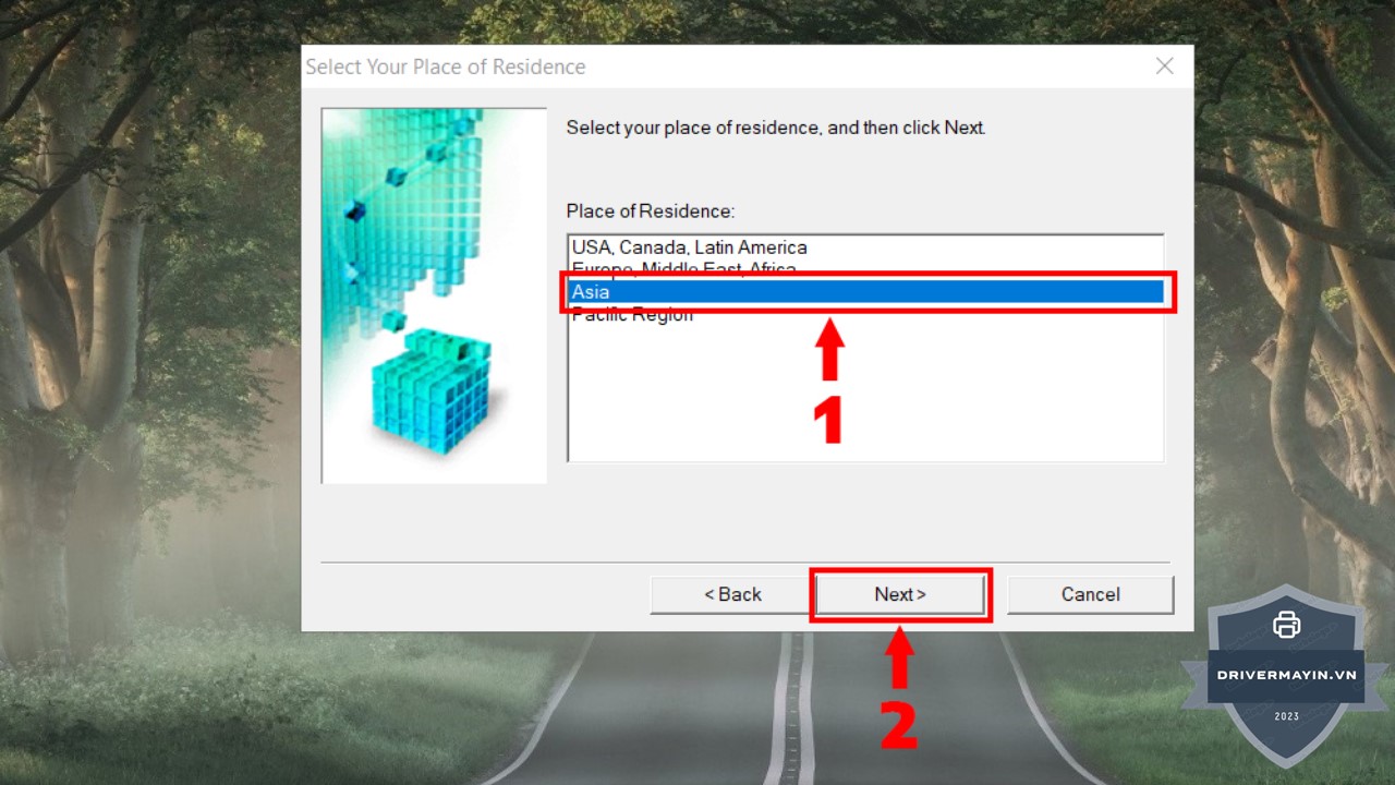 - Tại mục chọn khu vực, bạn chọn Asia để đảm bảo driver phù hợp với khu vực sử dụng tại Việt Nam.