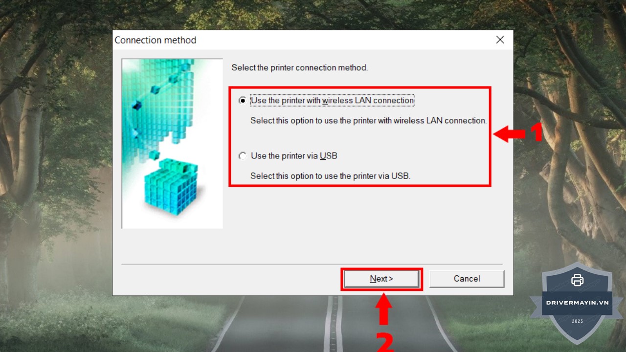 Bước 5: Chọn phương thức kết nối máy in