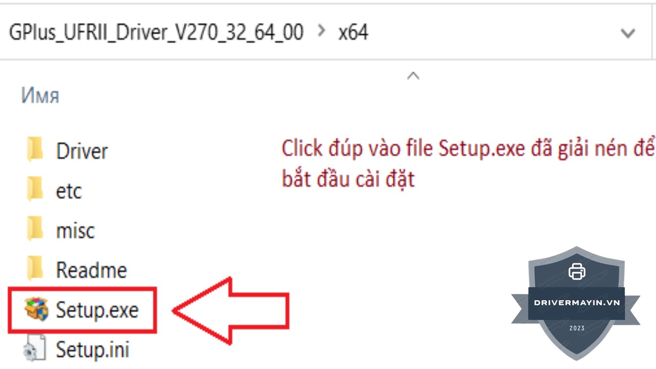 Mở thư mục vừa được giải nén, sau đó bấm đúp vào file Setup.exe để bắt đầu quá trình cài đặt driver cho máy.