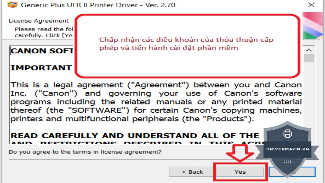 Đọc kỹ các điều khoản trong Thỏa thuận cấp phép phần mềm, sau đó chọn Accept / Yes để chấp nhận và tiếp tục quá trình cài đặt driver.