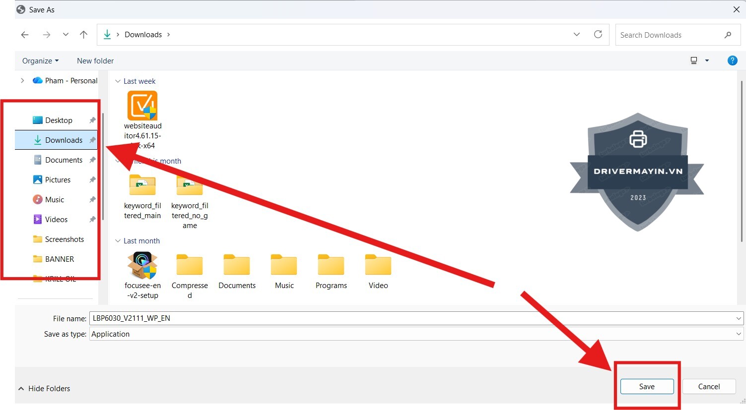 Sau khi đồng ý với điều khoản của Driver, hệ thống sẽ yêu cầu bạn lựa chọn vị trí để lưu file, vị trí mặc định sẽ nằm trong file Download của máy tính. Sau khi tải hoàn tất, bạn đã sẵn sàng để tiến hành cài đặt Driver và sử dụng máy in một cách ổn định, hiệu quả.