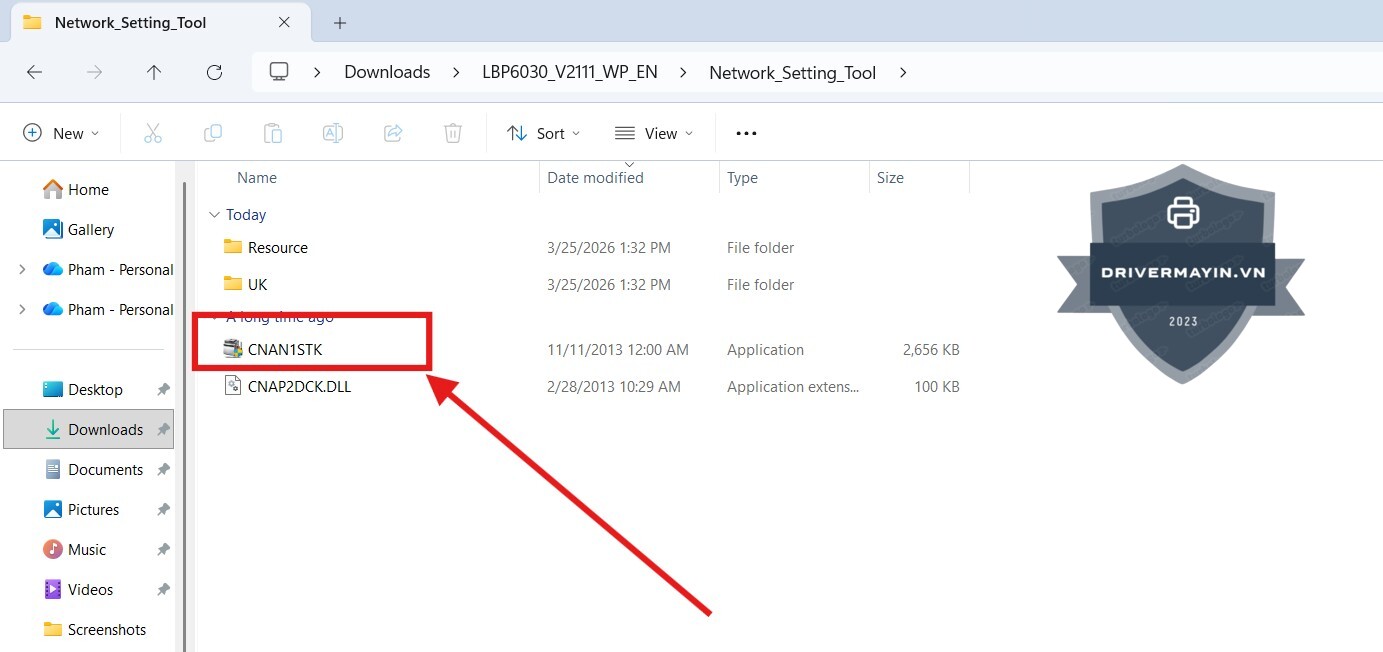 Sau khi giải nén, trong thư mục Driver sẽ có file “Network_Setting_Tool”. Đây là công cụ chính dùng để thiết lập mạng và kết nối driver cho máy in Canon LBP 6030W. Nhấp đúp chuột vào file Network_Setting_Tool. Chọn file “CNAN1STK” để bắt đầu quá trình cài đặt mạng