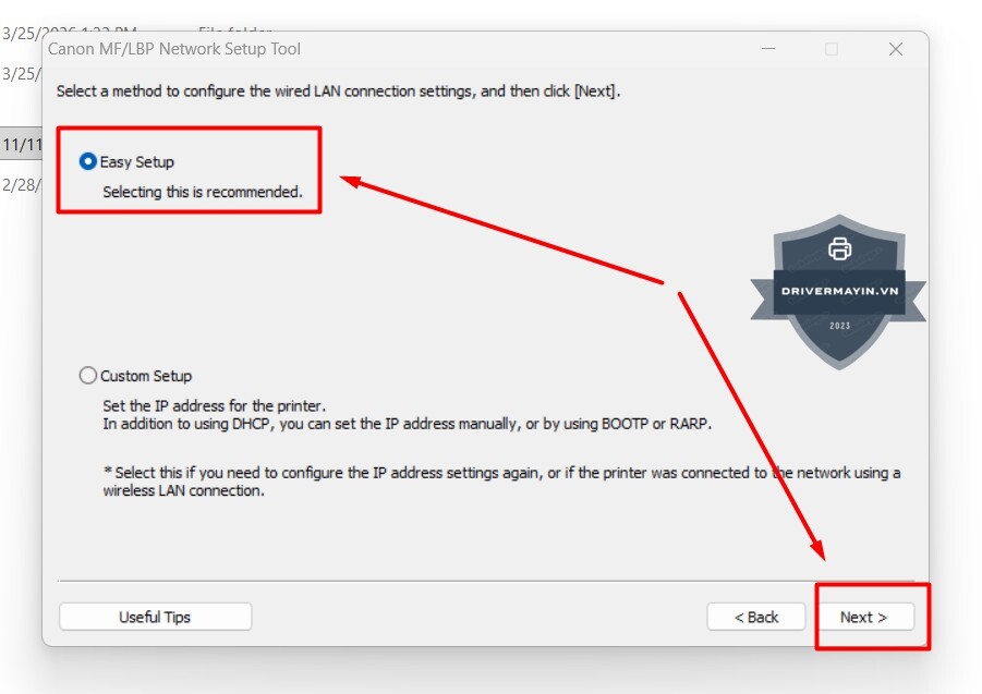 Tiếp theo, chọn chế độ: Easy Setup (Thiết lập nhanh) và Nhấn Next.